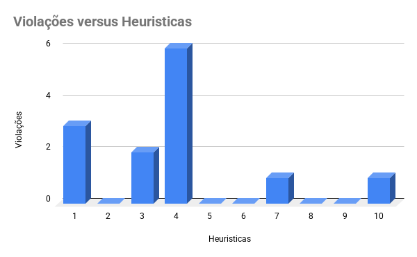 Com base nesses elementos, os avaliadores percorreram a interface identificando possíveis violações das 10 heurísticas de usabilidade de Nielsen. Para cada problema identificado, foi registrada a heurística violada, a localização na interface, uma descrição do problema e uma estimativa da gravidade com base em critérios como frequência, impacto e persistência.
