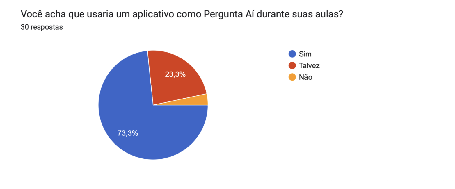 Com o objetivo de validar a aceitação da proposta do aplicativo “Pergunta Aí” entre os alunos, desenvolvemos um questionário estruturado com perguntas fechadas, que nos permitiram obter dados quantitativos.